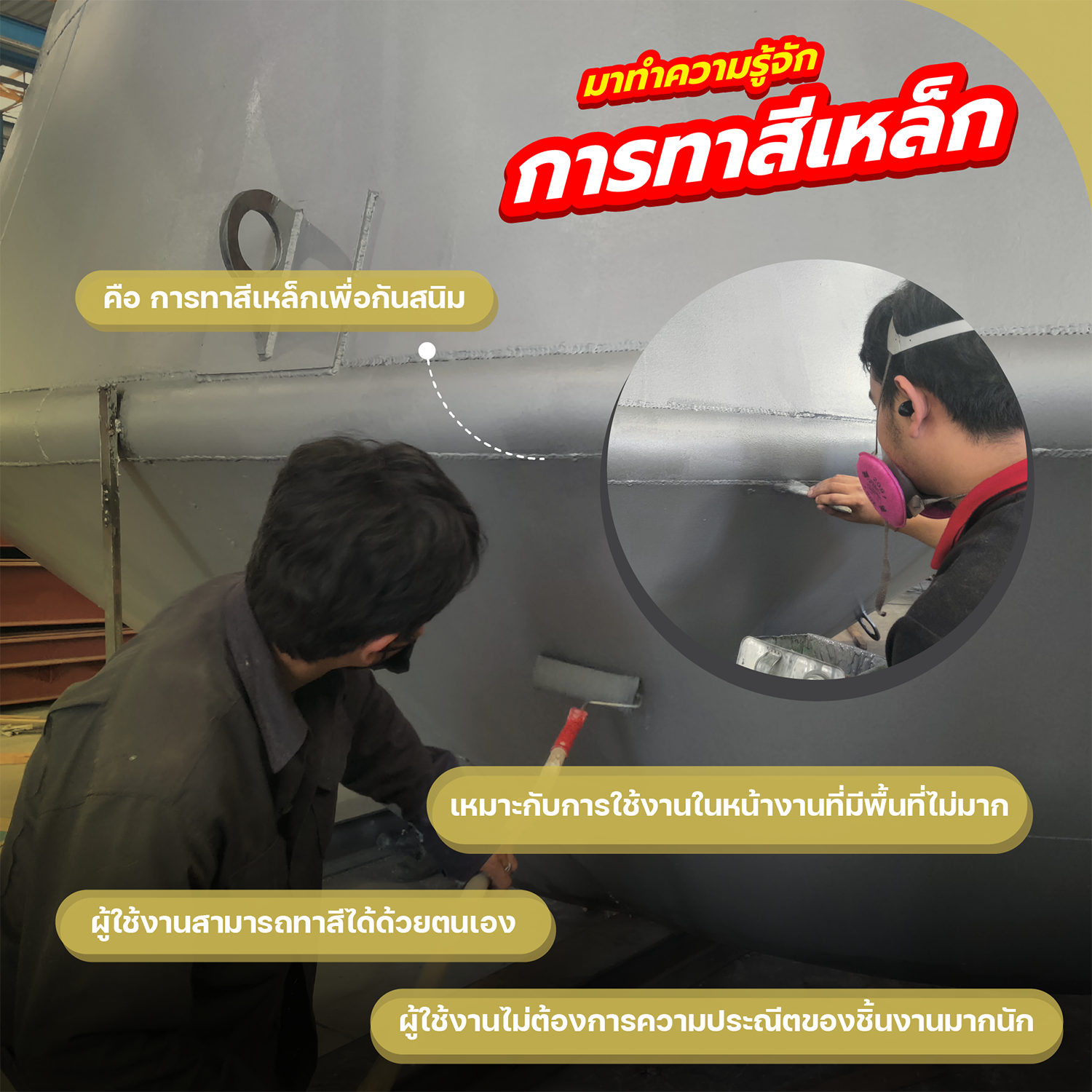 การทาสีเหล็ก เป็นการทาสีเพื่อกันสนิม เหมาะกับการใช้งานในหน้างานที่มีพื้นที่ไม่มาก ผู้ใช้งานสามารถทาสีได้ด้วยตนเอง ไม่ต้องการความประณีตของชิ้นงานมากนัก