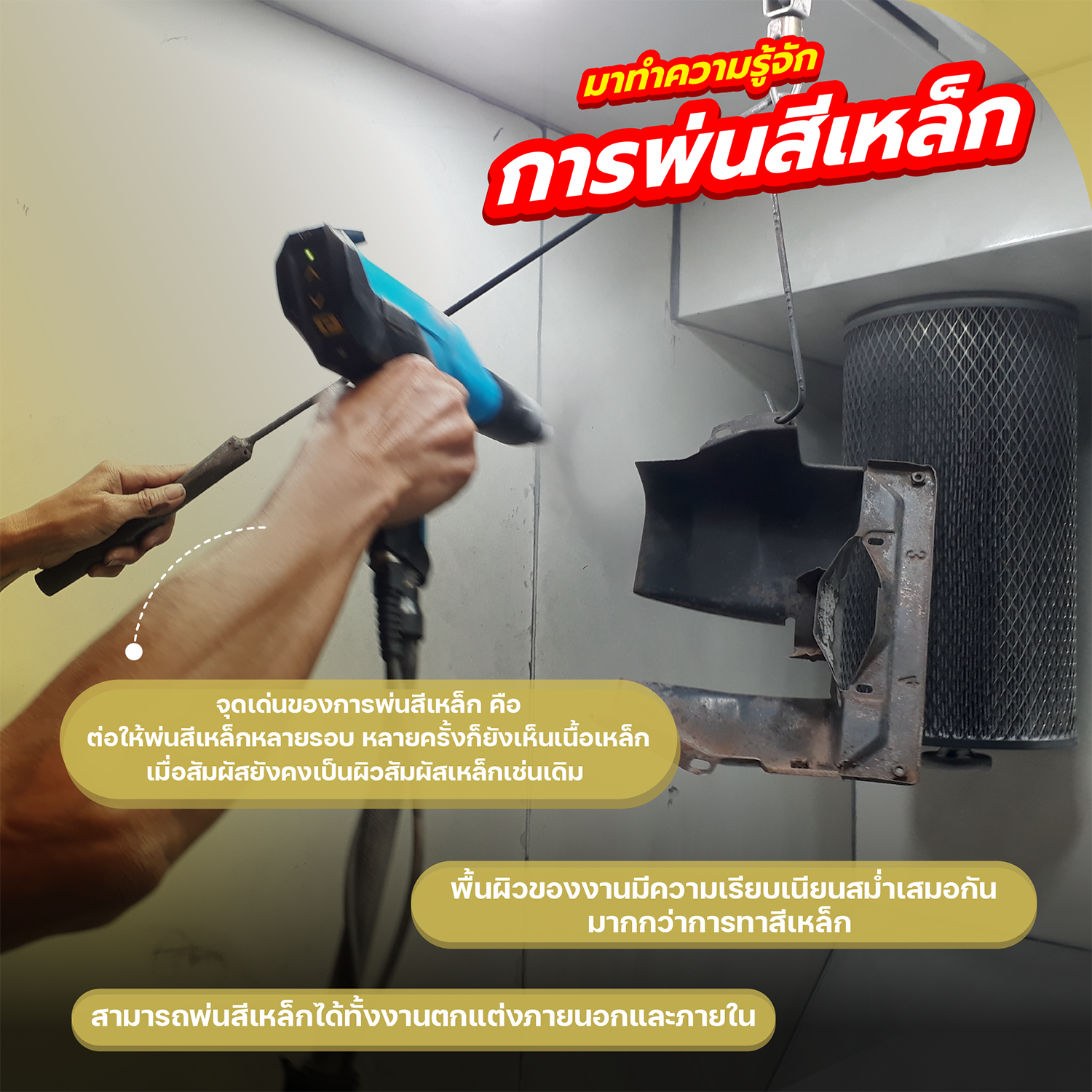 การพ่นสีเหล็ก จุดเด่น คือ ต่อให้พ่นสีเหล็กหลายรอบ ก็ยังเห็นว่าเป็นเนื้อเหล็ก