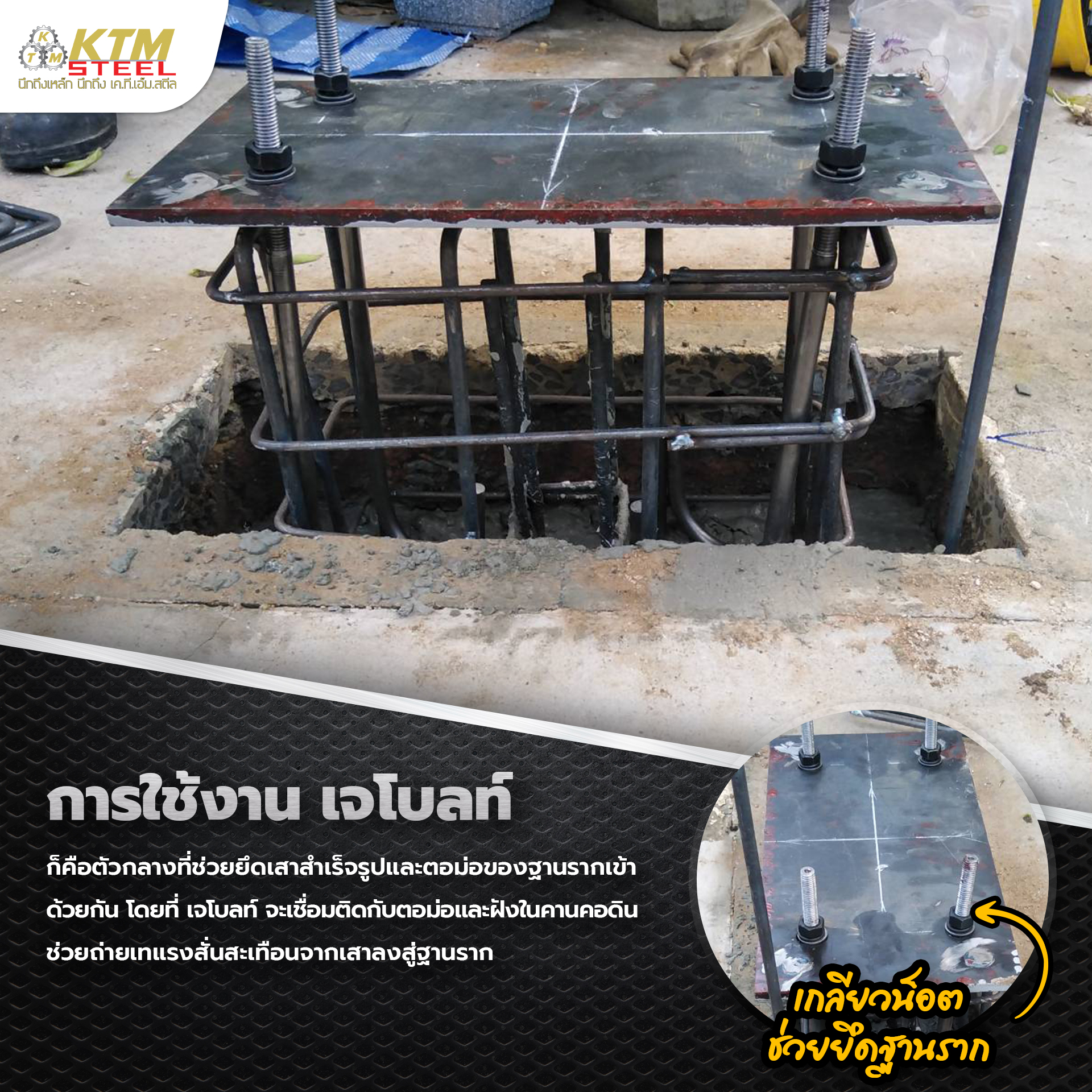 ช่วยถ่ายเทแรงสั่นสะเทือนจากเสาลงสู่ฐานรากเทคอนกรีต ให้คอนกรีตเข้าไปโอบและแข็งตัวหุ้มไว้ เจโบลท์ที่ถูกคอนกรีตหุ้มไว้ทำหน้าที่เหมือนสมอ ที่จะยึดตัวเองไว้กับคอนกรีต