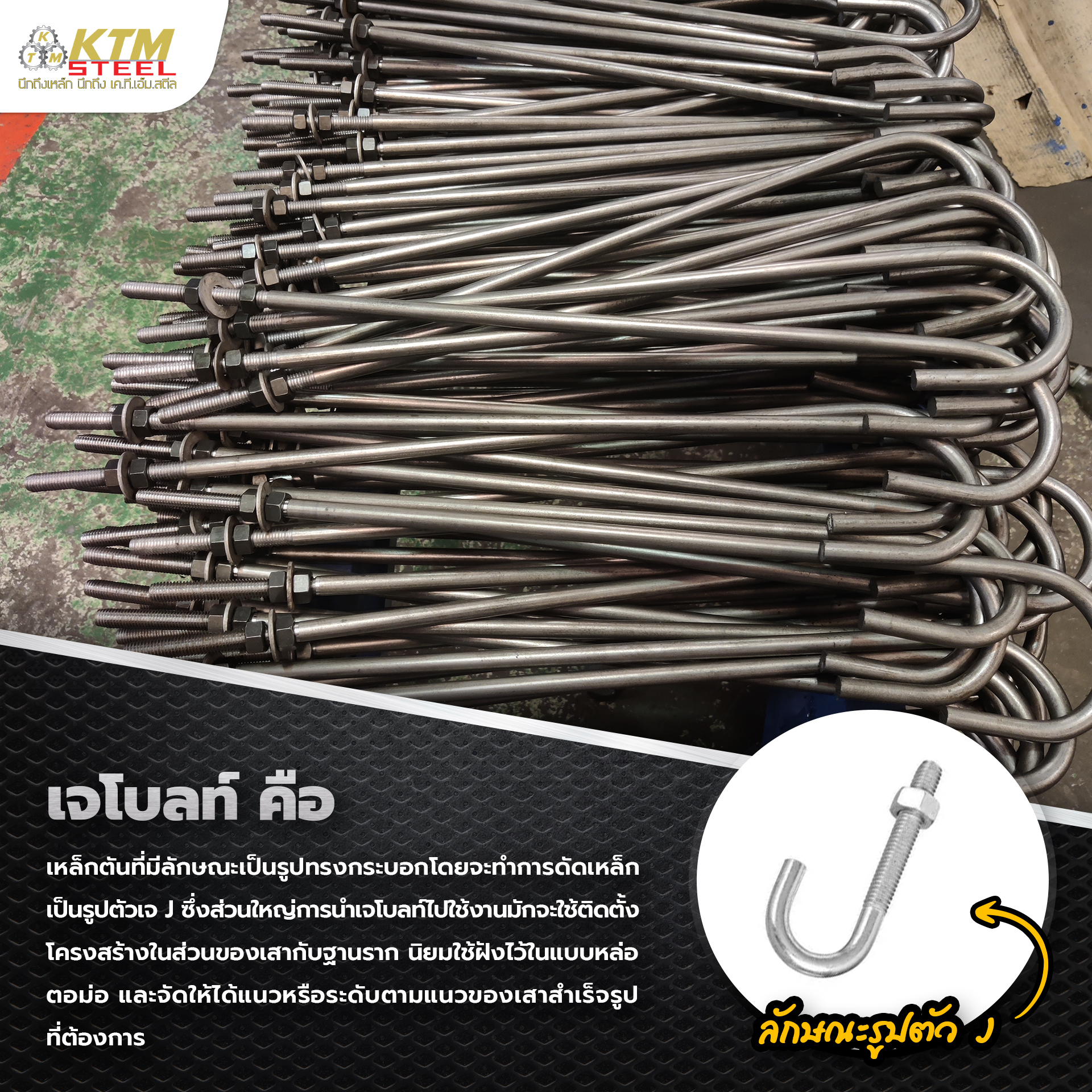 เหล็กตันที่มีลักษณะเป็นรูปทรงกระบอกโดยจะทำการดัดเหล็ก เป็นรูปตัวเจ J ซึ่งส่วนใหญ่การนำเจโบลท์ไปใช้งานมักจะใช้ติดตั้ง