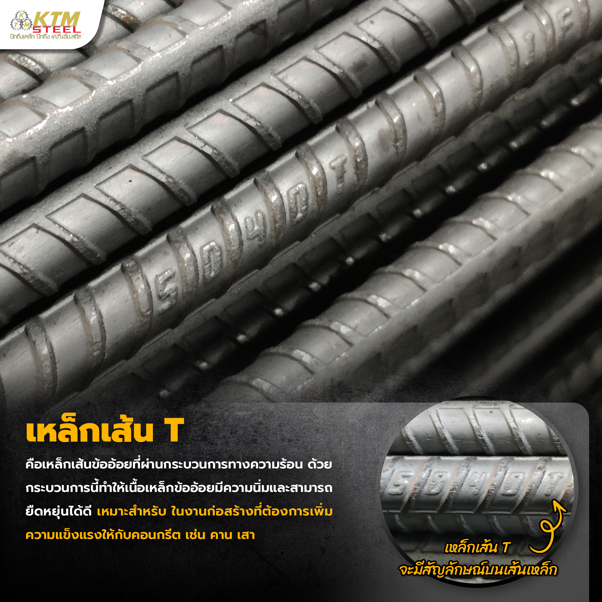 เหล็กเส้น T หมายถึง เหล็กเส้นข้ออ้อยที่ผ่านกระบวนการทางความร้อนด้วยกระบวนการนี้ทำให้เนื้อเหล็กข้ออ้อยมีความนิ่มและสามารถยืดหยุ่นได้ดีเหมาะสำหรับ ในงานก่อสร้างที่ต้องการเพิ่มความแข็งแรงให้กับคอนกรีต เช่น คาน เสา