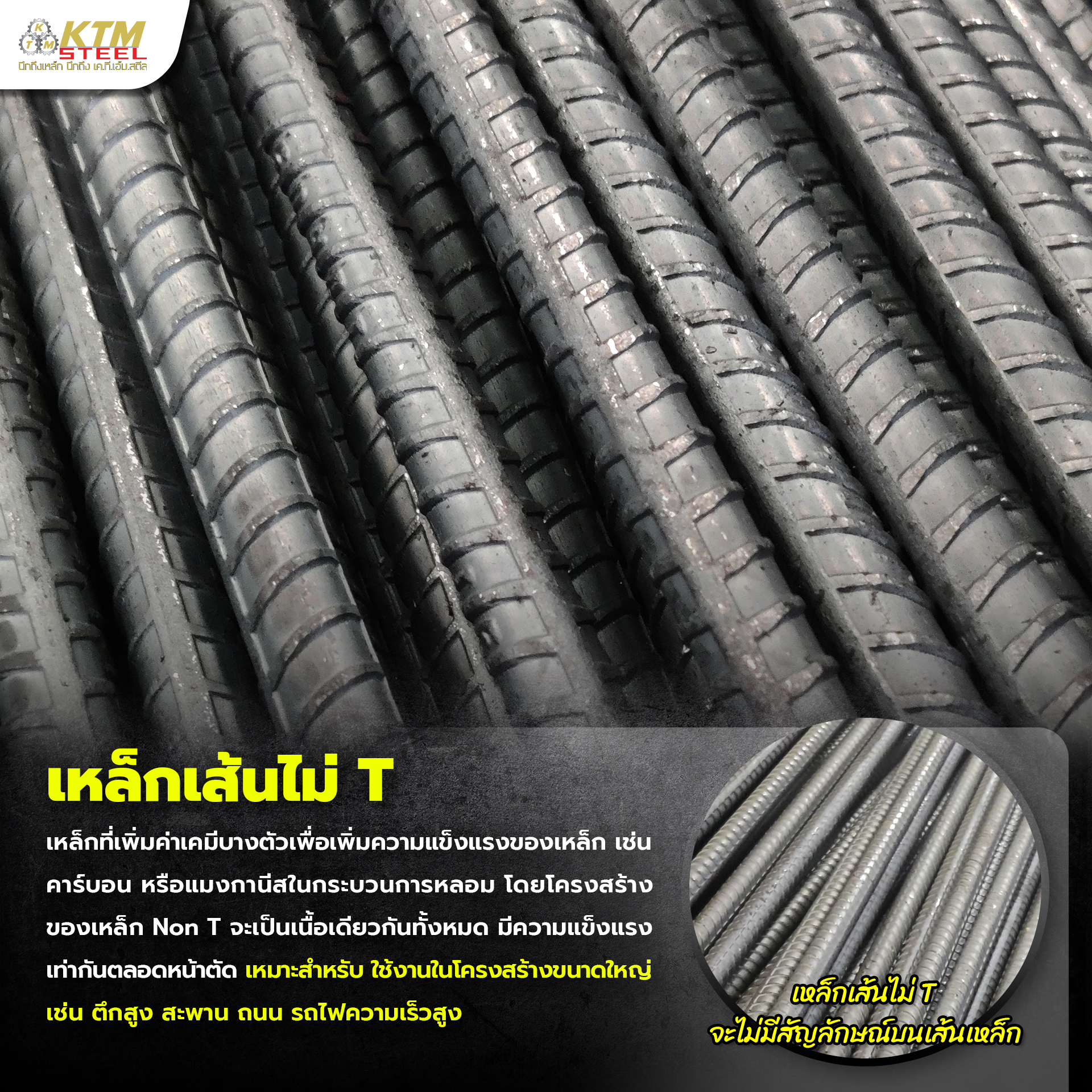 เหล็กเส้นไม่ T หรือที่เรียกกันว่าเหล็ก Non T นั้นเป็นเหล็กที่เพิ่มค่าเคมีบางตัวเพื่อเพิ่มความแข็งแรงของเหล็ก เช่นคาร์บอน หรือแมงกานีสในกระบวนการหลอม โดยโครงสร้างของเหล็ก Non T จะเป็นเนื้อเดียวกันทั้งหมด มีความแข็งแรงเท่ากันตลอดหน้าตัด