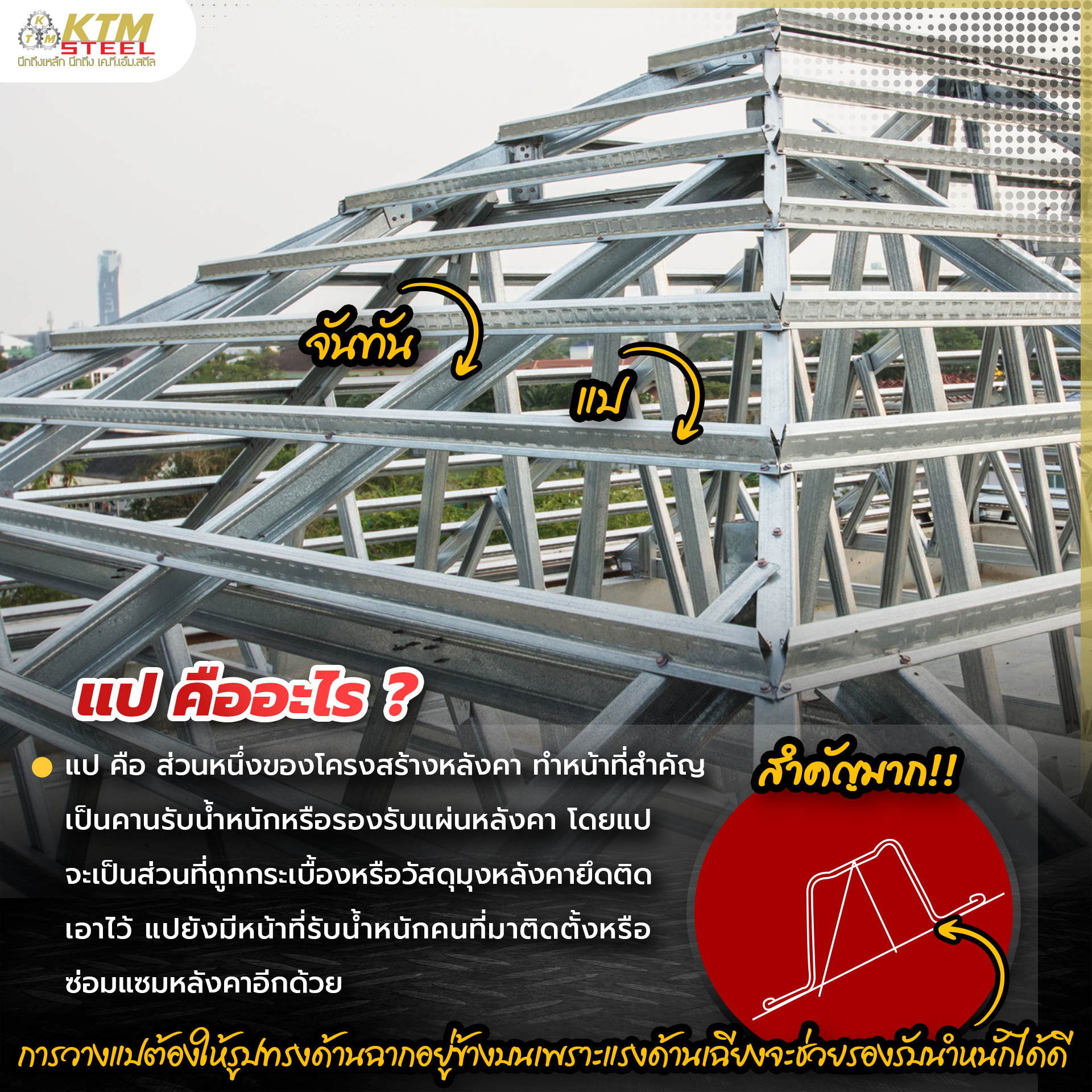 รับน้ำหนักหรือรองรับแผ่นหลังคา โดยแปจะเป็นส่วนที่ถูกกระเบื้อง