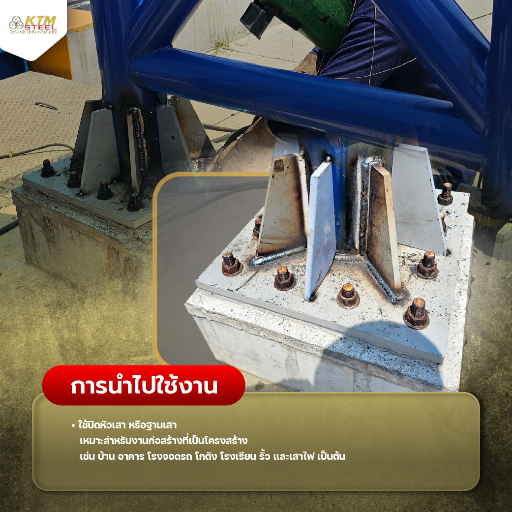 และเป็นตัวเชื่อมยึดเกาะ ระหว่างเหล็กกล่องที่ใช้ทำเป็นเสายึดติดกับคาน หรือเสาปูน