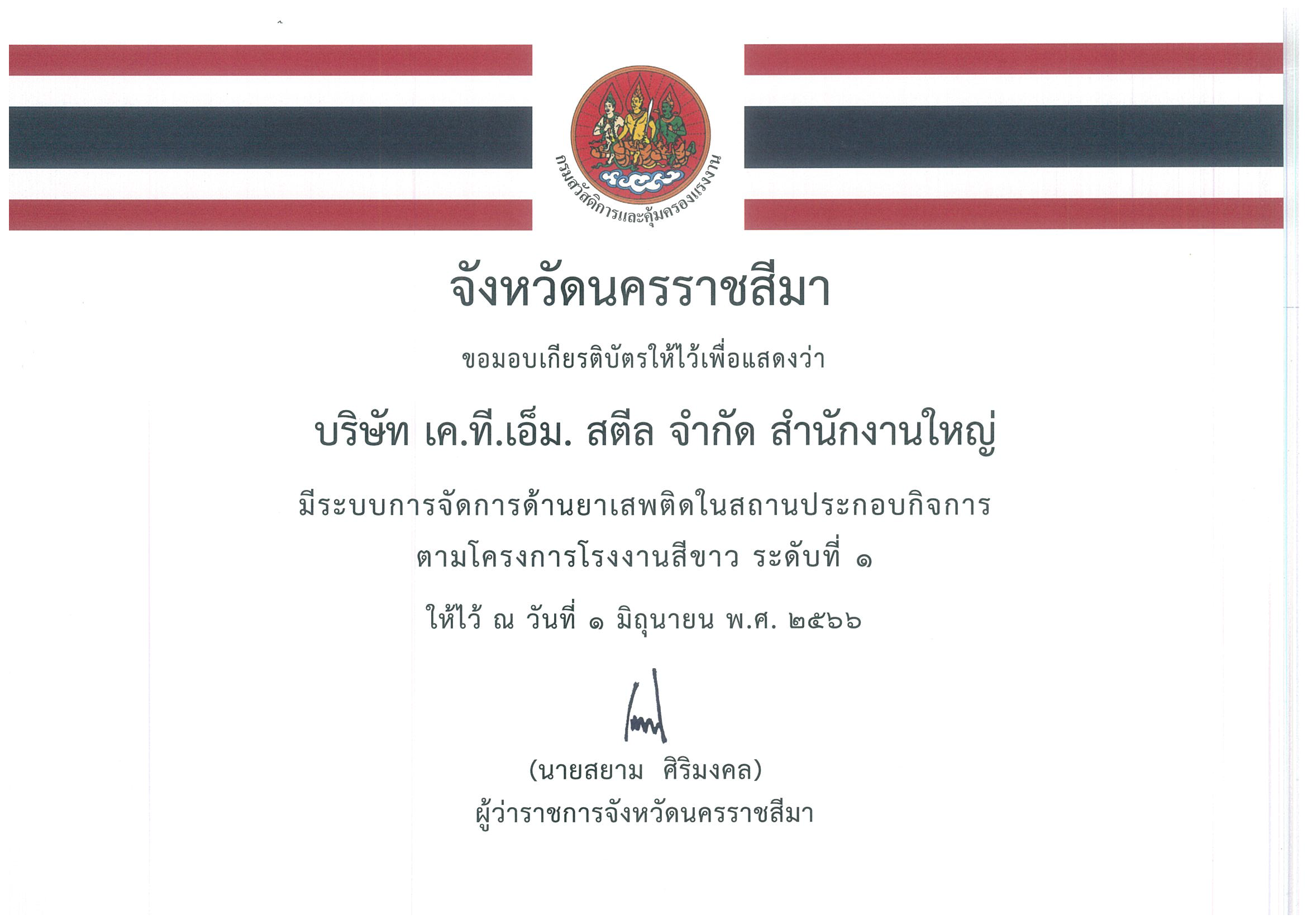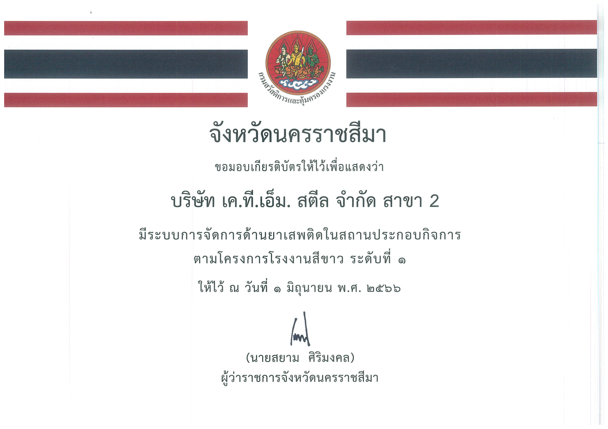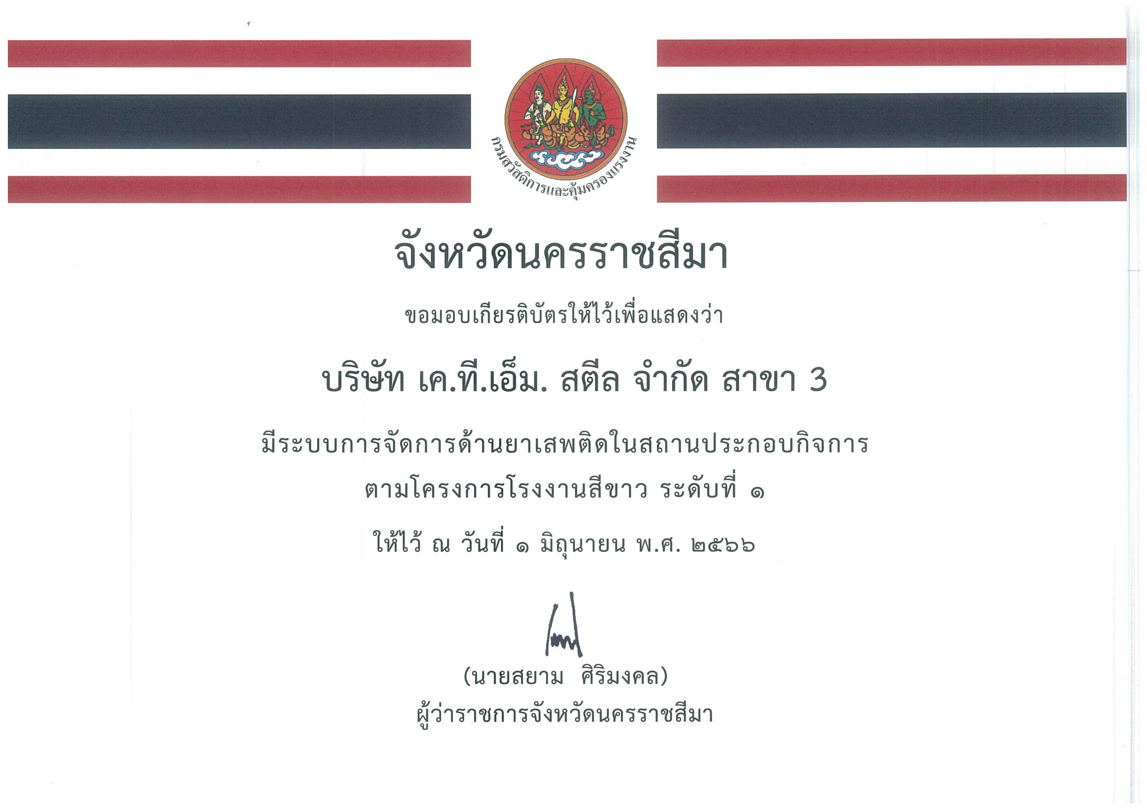 สถานประกอบการโครงการโรงงานสีขาว ระดับที่ 1